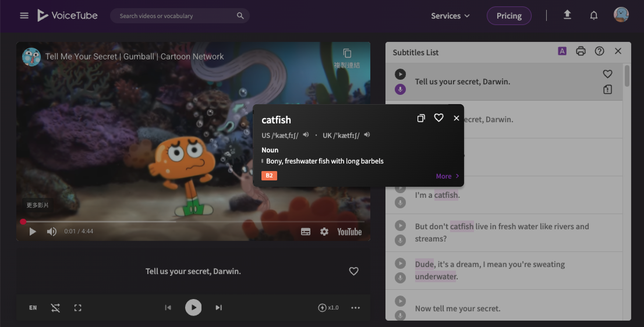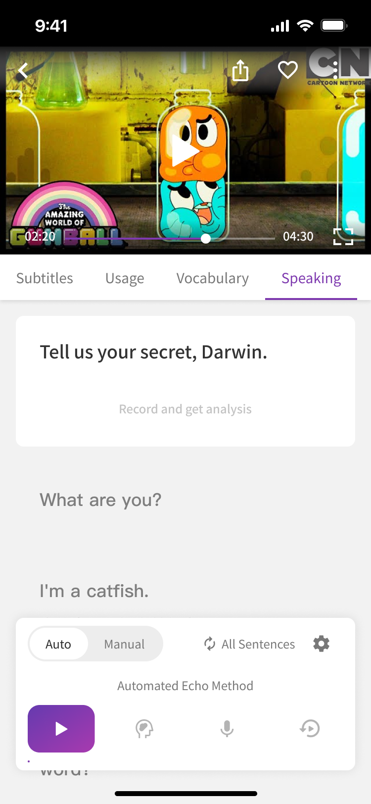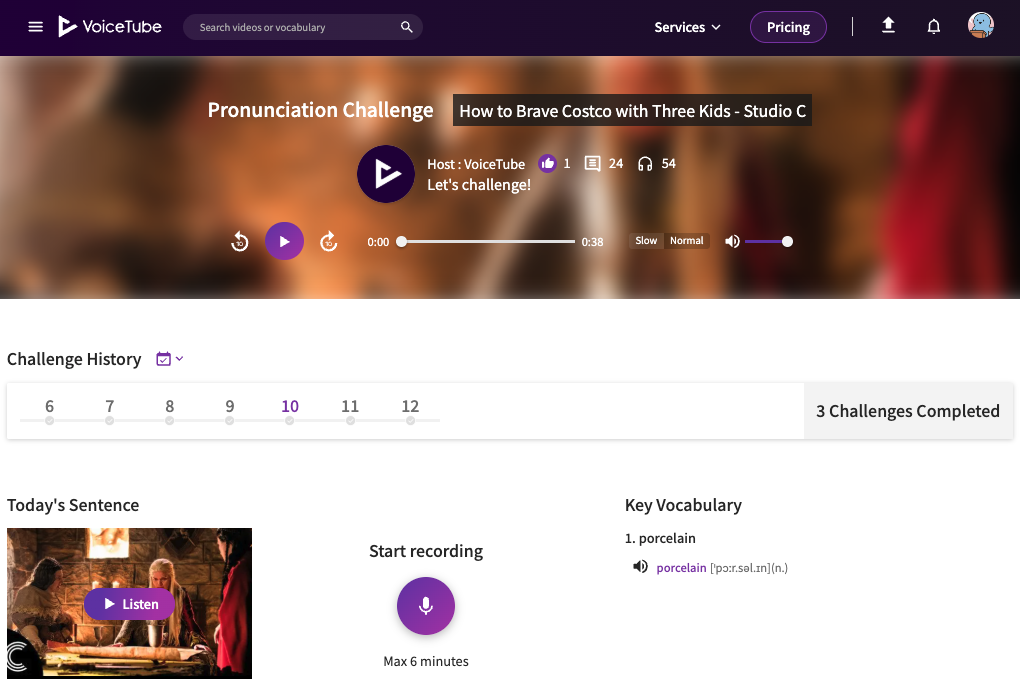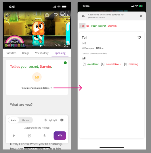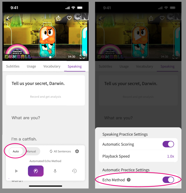 To solve this problem, VoiceTube has added the "Echo Method" practice mode.