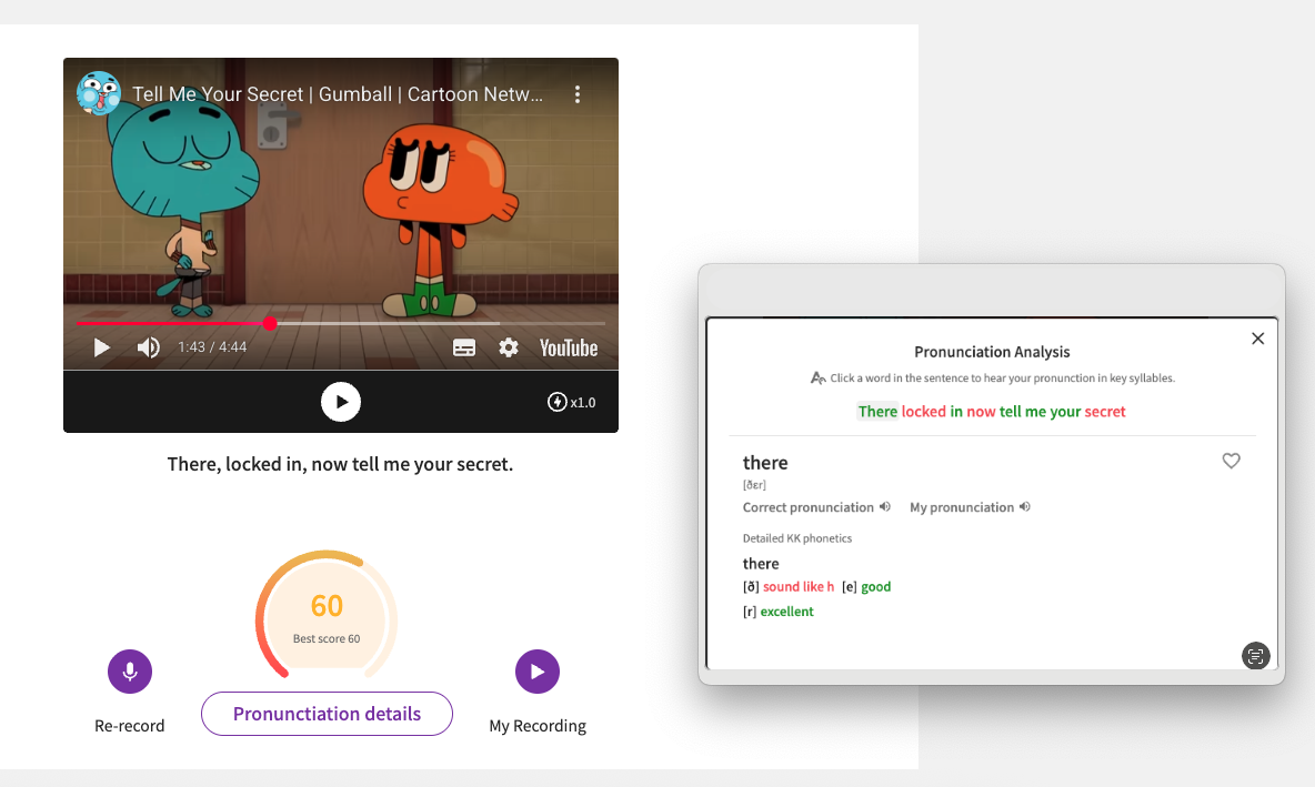 Not sure how different your pronunciation is from the original? You can use the "Pronunciation Analysis" feature to check!