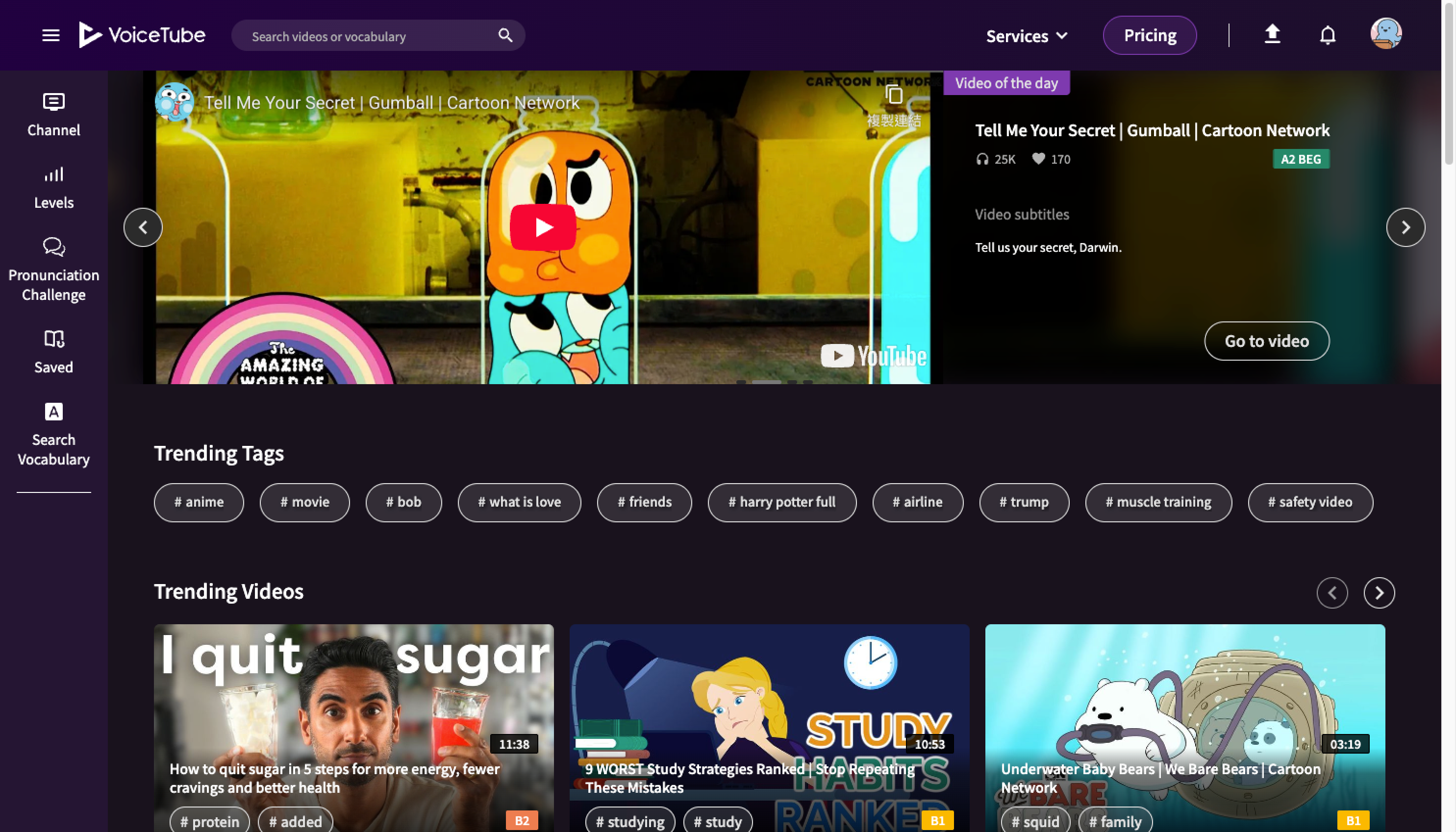 On VoiceTube, you can find videos you like in the Home Editor's Picks, Hot Tags, and various Themed Channels!