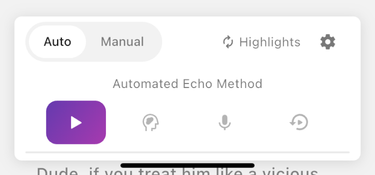 システムが順番にガイドします:リスニング → エコー → スピーキング → 再生確認。リズムに乗って練習したい方に最適です。 - 手動モード