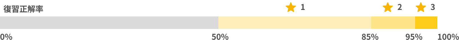 ポイント復習を完了すると、画面に今回のポイント復習で獲得した星と、それに対応する正解率の範囲が表示されます。
