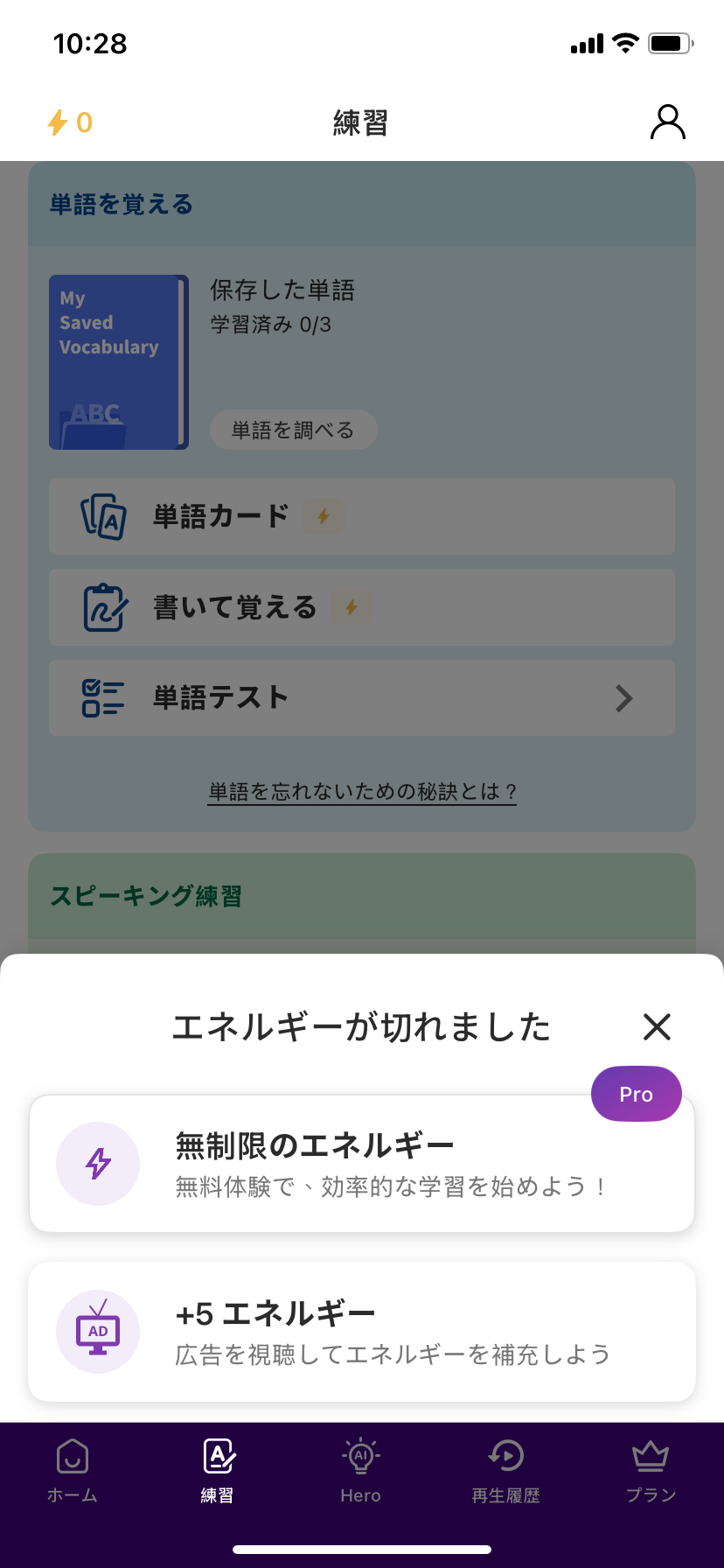 過去の無料会員向けのすべての機能制限(例:1日5回の単語練習、発音分析は生涯で10回まで、などの制限)は、すべてエネルギーポイントの消費に統一されました。