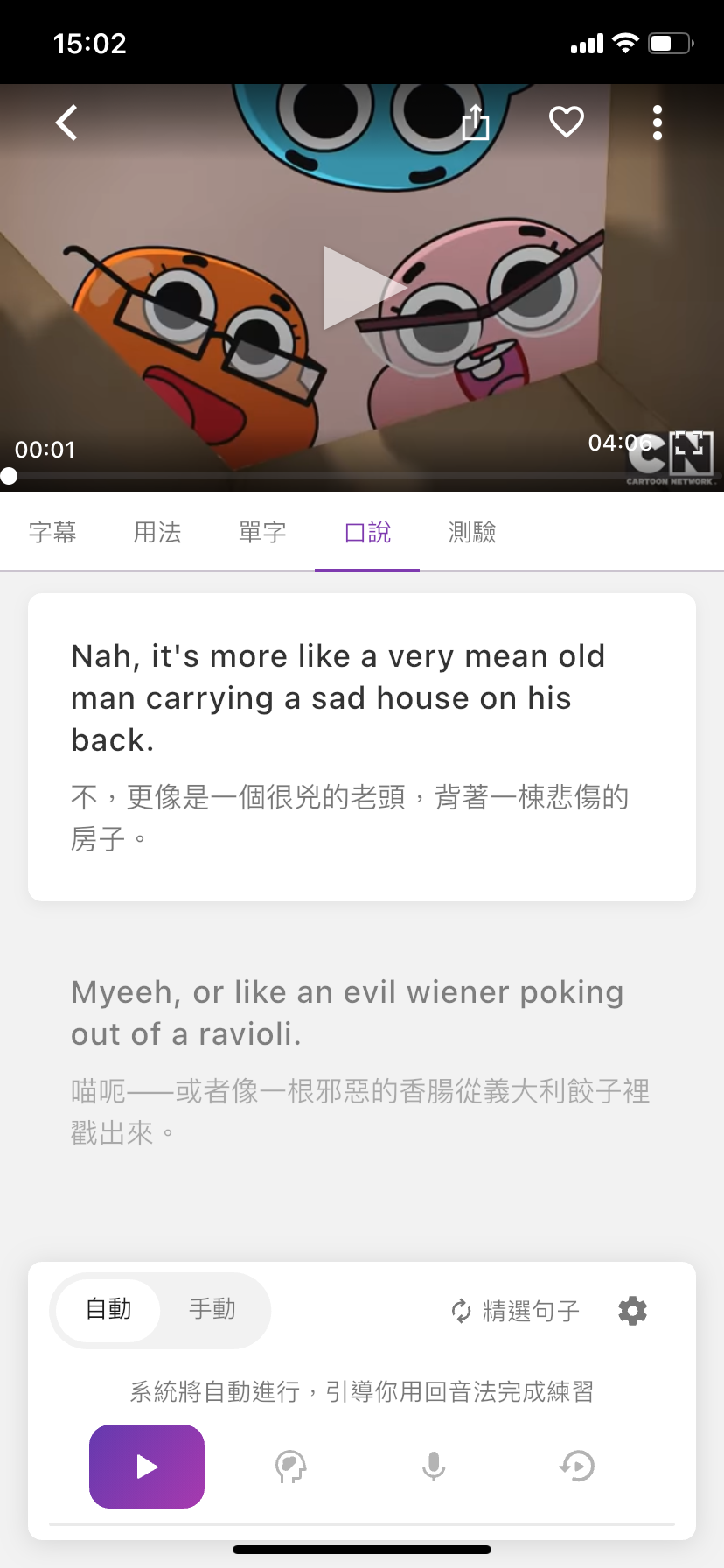 | 口語練習功能 - 自動模式