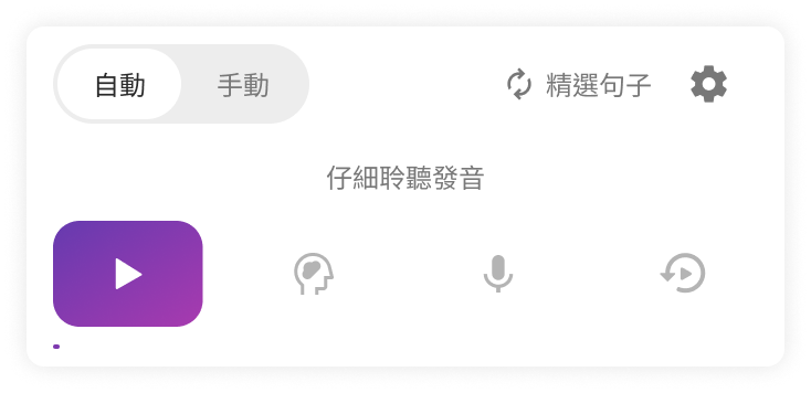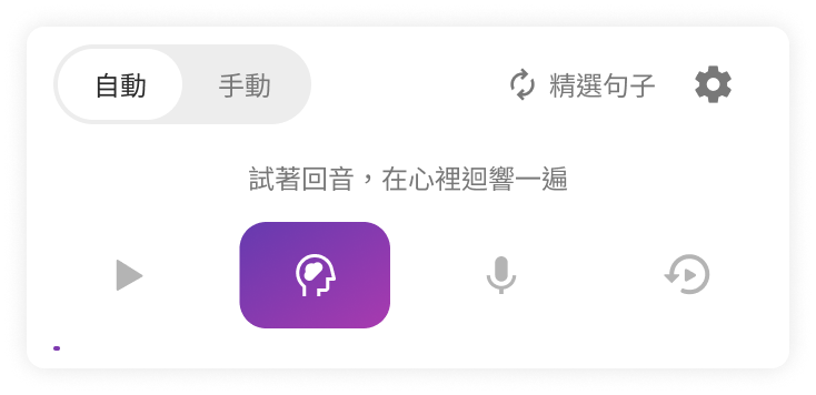 系統會按順序帶你完成:聆聽 → 回音 → 開口說 → 聽回放。適合想跟著節奏練習的你。 - 手動模式