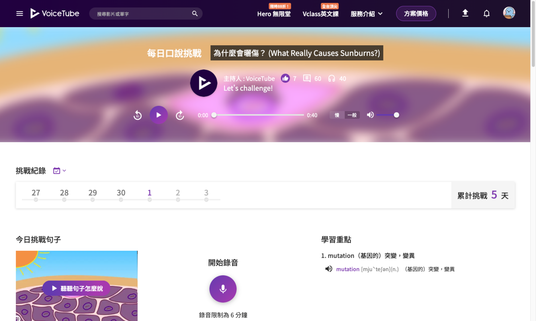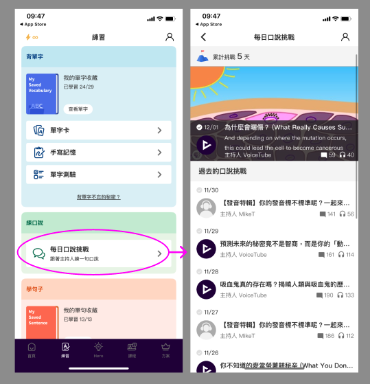 不知道該練什麼的話,也可以跟著「每日口說挑戰」每日一句練習喔!