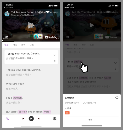 不會的單字可以點擊單字查詢,