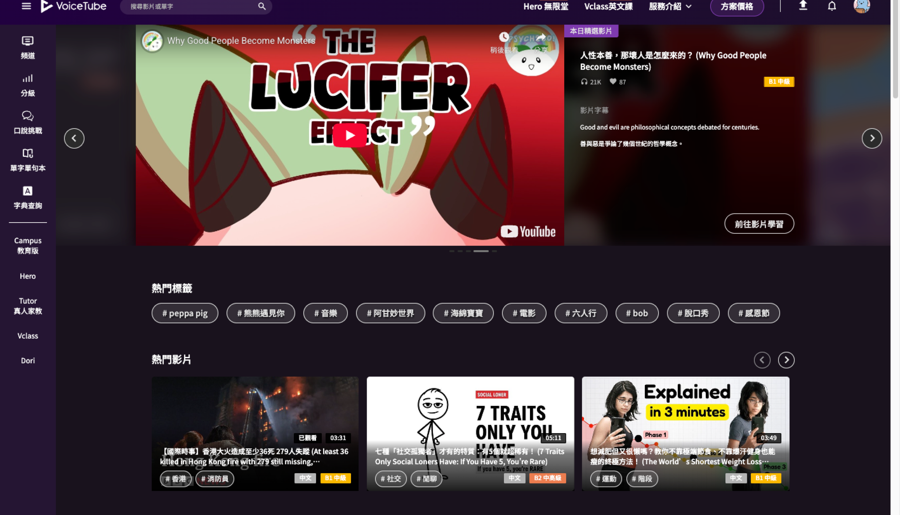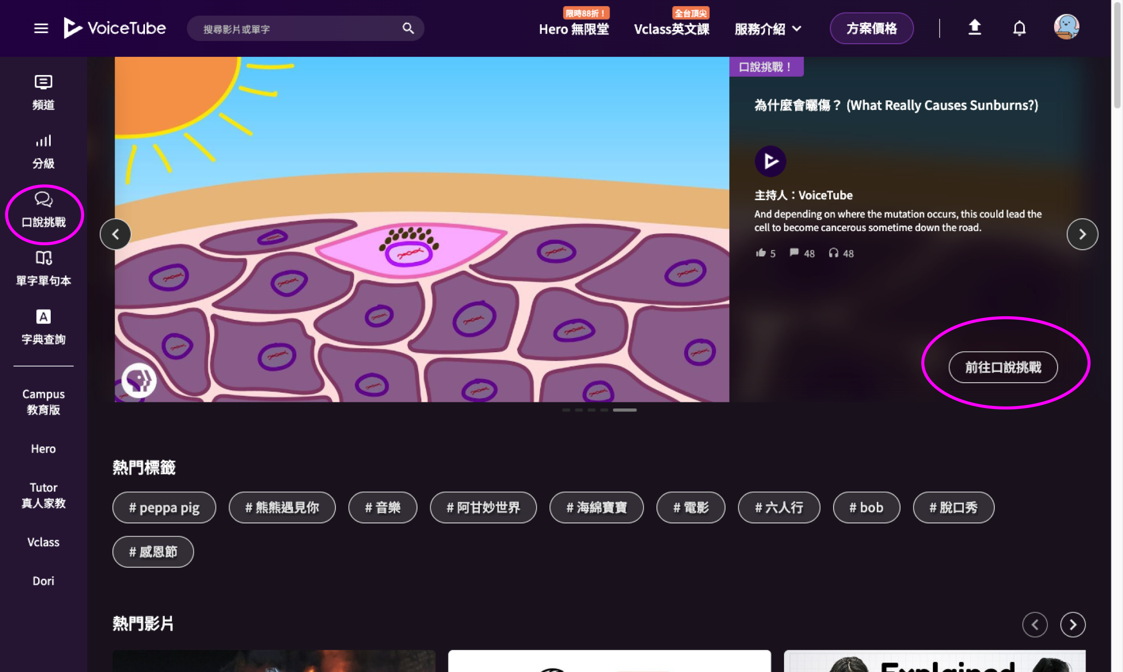 在 VoiceTube 上,你可以在首頁精選項目、熱門標籤、各式主題頻道,找到你喜歡的影片喔!